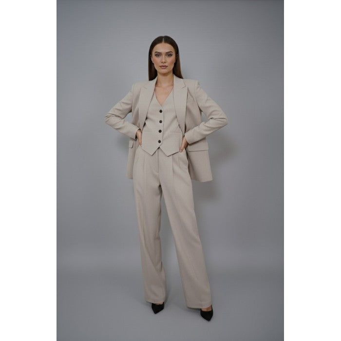 Елегантен комплект от елече, сако и панталон в светъл бежов цвят