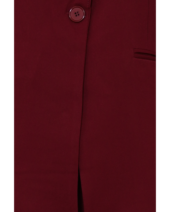 Този елегантен дамски панталон в бордо съчетава изчистен дизайн и съвременна елегантност. Панталонът е със стеснена кройка (с ластик в задната част на талията), която подчертава силуета. Наситеният бордо нюанс придава луксозна и уверена визия, която няма да остане незабелязана.